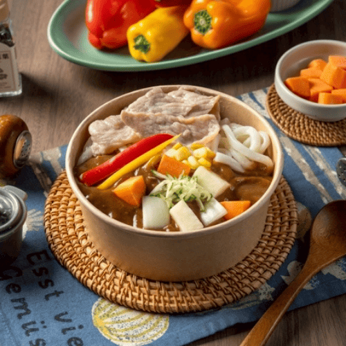 Q彈烏龍麵搭配滑順豬肉咖哩醬,鹹香微辣,回味無窮。