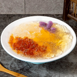 內含嫩愛玉、黑糖寒天、銀耳、紫薯圓、奇亞籽(酸甜風味)