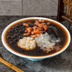 暖心燒仙草,綿滑銀耳,Q彈珍珠,香甜花豆花生,一碗滿滿幸福滋味